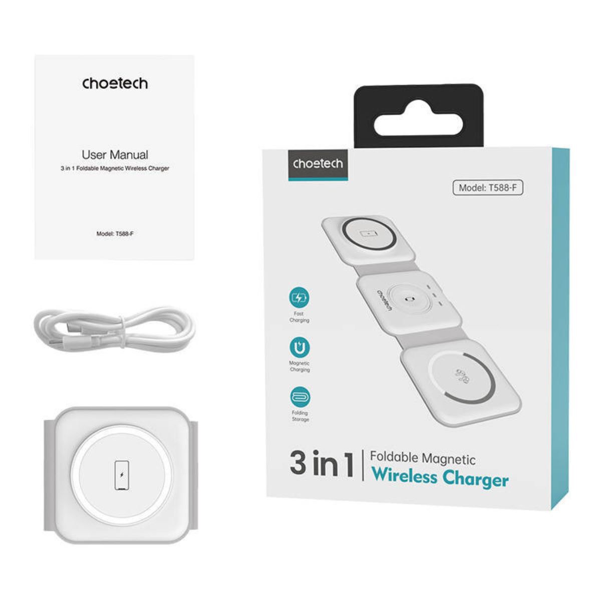 Hình ảnh Đế sạc không dây Magnetic 3in1 gấp gọn Choetech T588 công suất 15W dùng cho điện thoại, tai nghe và đồng hồ thông minh (Hàng chính hãng)