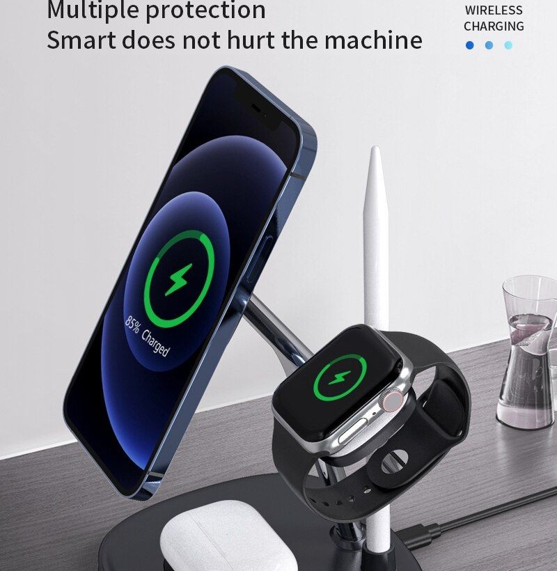 Lực hút nam châm tăng 20% so với các sản phẩm thông thường, giữ chặt thiết bị tương thích ngay cả khi di chuyển. Bạn có thể sạc ba thiết bị cùng lúc với một