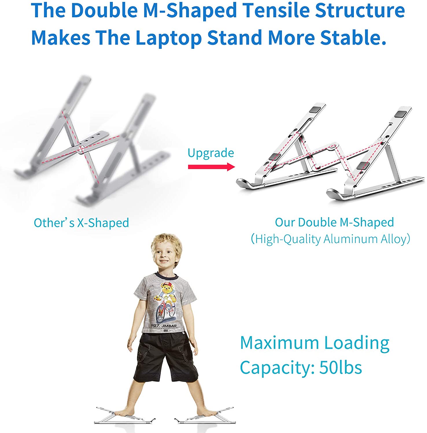 Giá đỡ Laptop Stand Thương hiệu: Mô tả sản phẩm - Thiết kế công thái học: Giá đỡ máy tính xách tay thiết kế kiểu Z có thể điều chỉnh độ cao và góc bằng