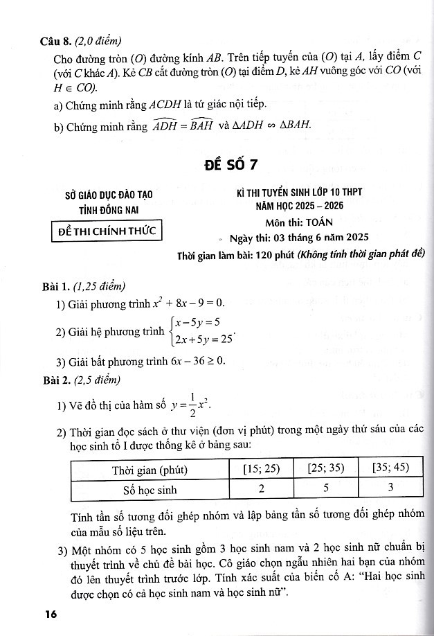 Bám sát cấu trúc đề thi Toán vào 10 năm 2025 mới nhất.