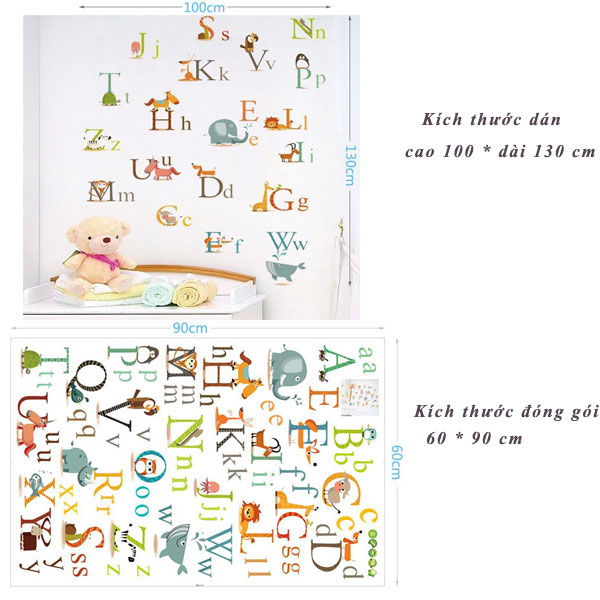 Kích thước :Decal dán tường bảng chữ cái AY877-kiddecals