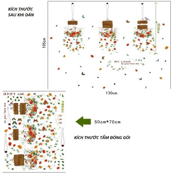 Video Giải thích quy cách đóng gói và cách dán sản phẩm Decal dán tường hoa sữa Size đóng gói : 02 tấm mỗi tấm 60 x90 cm Kích thước sau khi dán : Dài