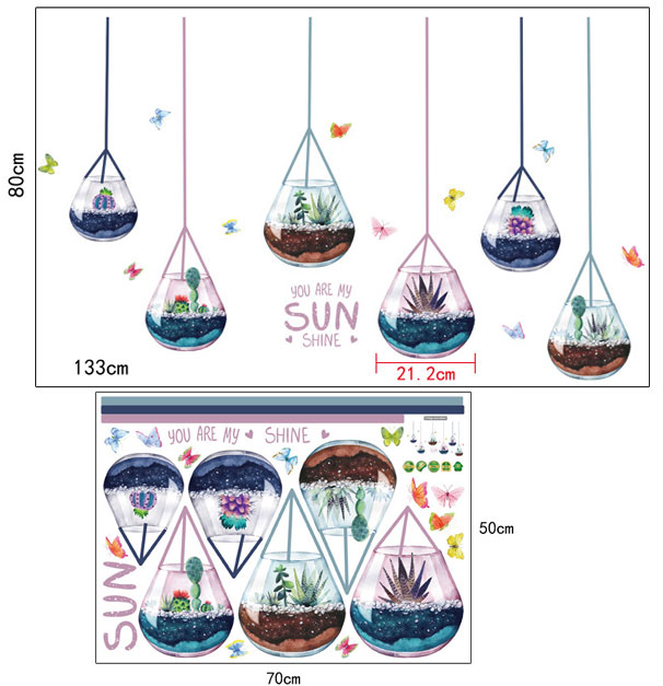 ✨Decal dán tường dán kính trang trí Giở Hoa Xương Rồng SK7119