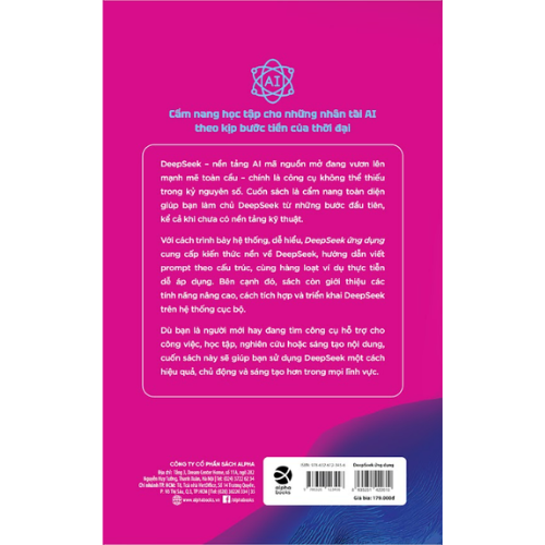 Cuốn sách này giới thiệu một cách tuần tự, có hệ thống các kiến thức, kinh nghiệm và kỹ năng liên quan đến DeepSeek, đồng thời hệ thống hóa các kỹ thuật sử dụng lời nhắc có cấu trúc (structured prompt) cho DeepSeek, cung cấp một lượng lớn các ví dụ mẫu. Ngoài ra, sách còn giới thiệu các tính năng đặc biệt, ứng dụng trong các tình huống thực tế cụ thể, kỹ thuật ứng dụng nâng cao, cũng như các kiến thức liên quan đến việc tích hợp bộ công cụ DeepSeek và triển khai cục bộ. Cuốn sách hướng đến việc giúp những độc giả chưa có nền tảng kiến thức có thể dễ dàng nắm vững phương pháp sử dụng DeepSeek, học đi đôi với hành và vận dụng linh hoạt.