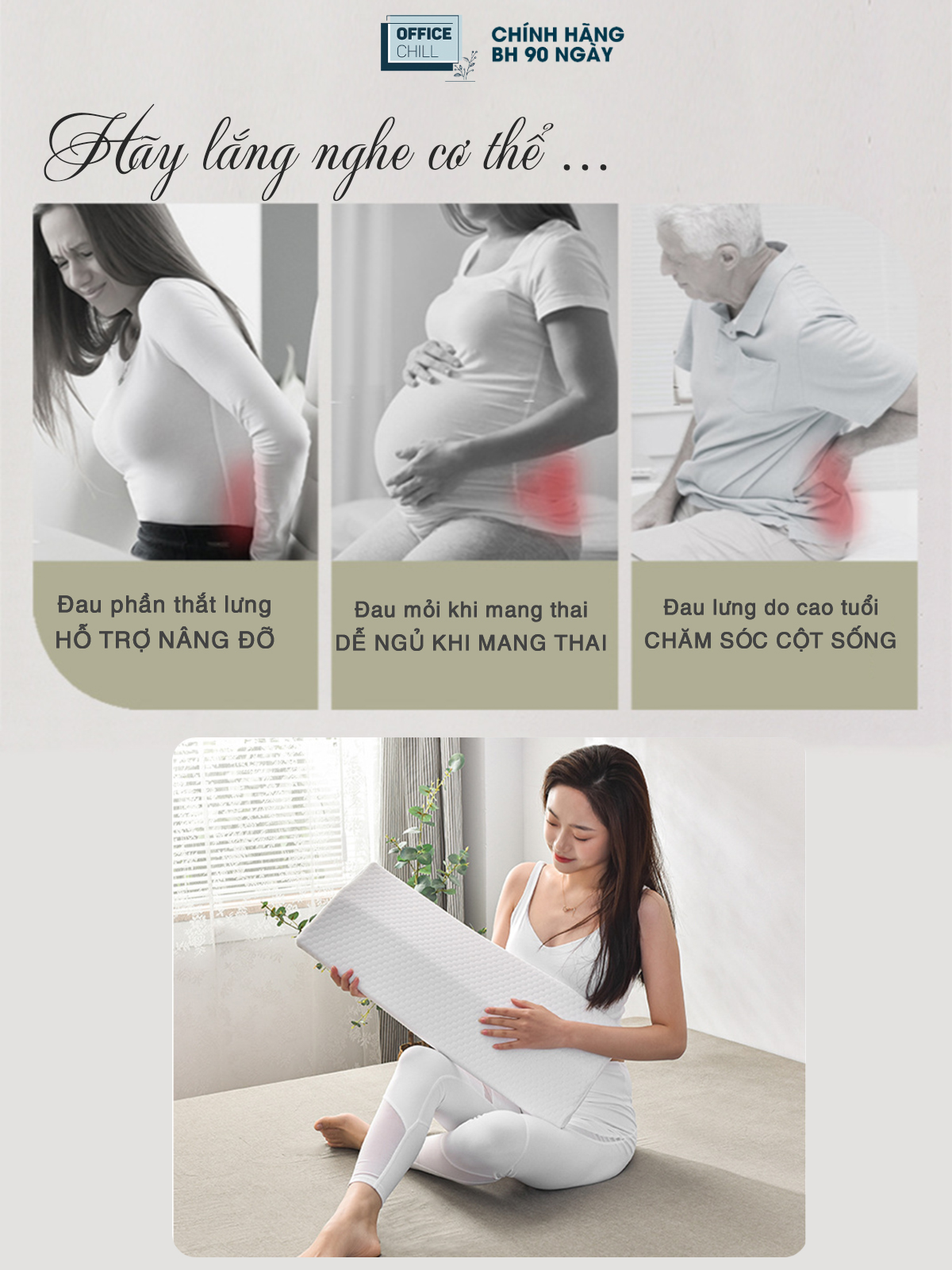 ✨Đệm Gối Kê Lưng Ngủ OFFICE CHILL Đệm Kê Thắt Lưng Cao Su Non Hỗ Trợ Đau Lưng Thoát Vị Đĩa Đệm Bảo Hành 1 Năm