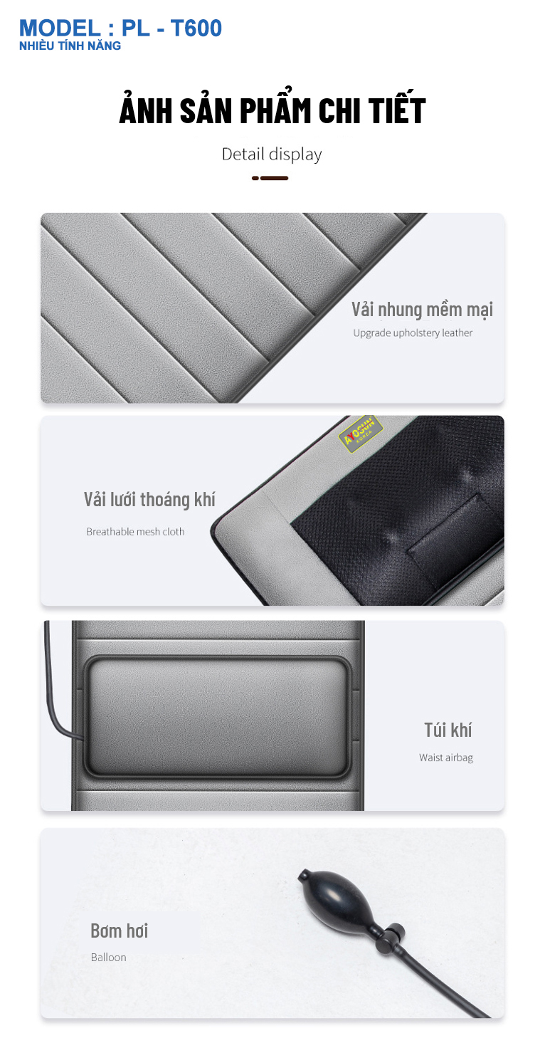 Giới thiệu nệm massage toàn thân aYosun PL - T600 - đệm massage toàn thân, rung xoa bóp nhào nặn có chế độ nhiệt hồng ngoại