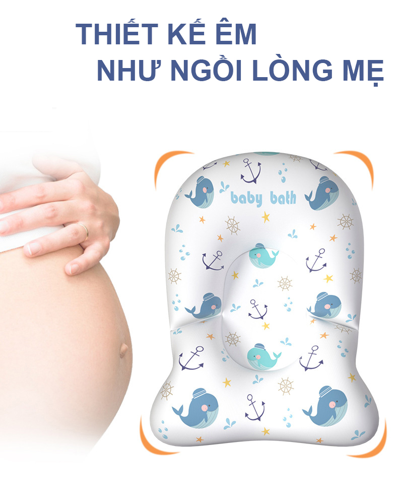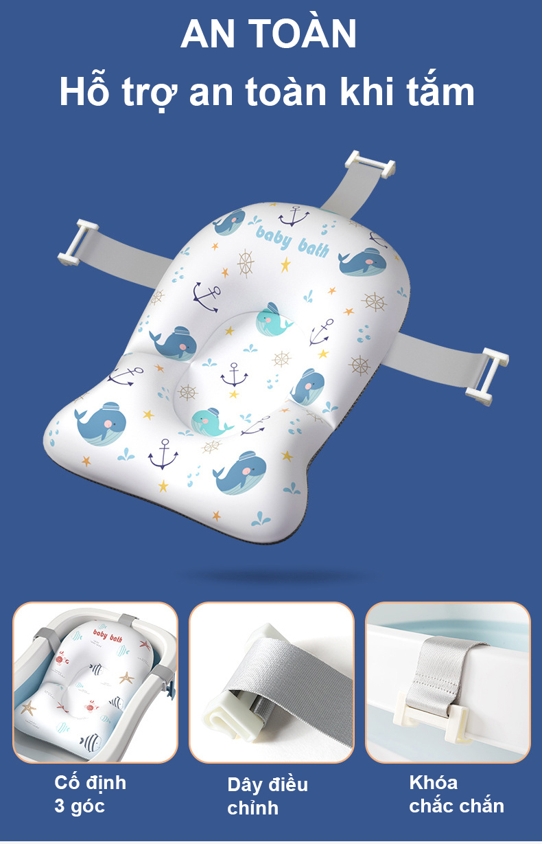 - Chất liệu mềm mại, an toàn - Nâng đỡ hiệu quả cơ thể và thiết kế phù hợp với lưng của bé - Móc hình chữ U giúp cố định vào thau tắm bé