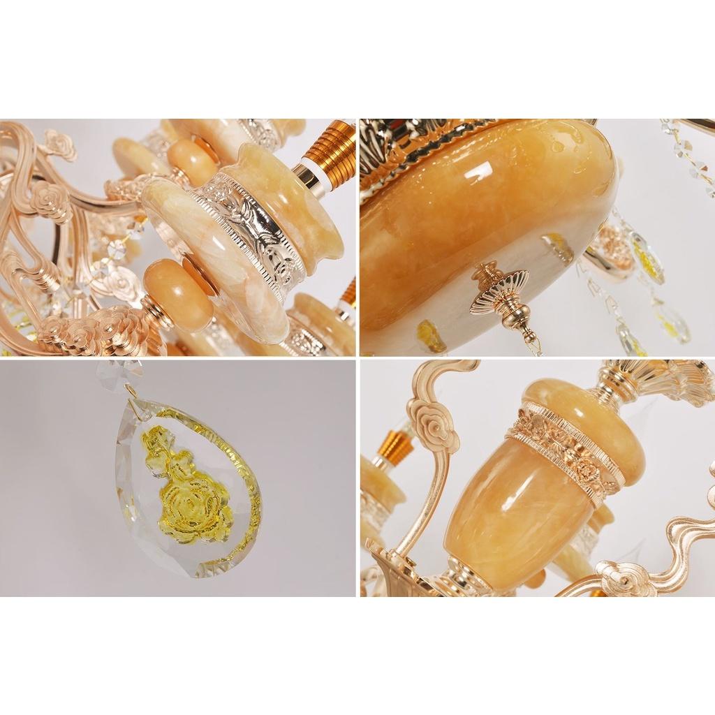 Như các mẫu đèn chùm cổ điển, đèn có cấu tạo chi tiết và phức tạp. Đèn sử dụng chất liệu mạ vàng cao cấp, thu hút và bắt mắt bạn ngay từ lần đầu tiên nhìn thấy. Đèn bao gồm tấm ốp trần, dây xích treo cố định, chao đèn lớn và hệ thống tay đỡ đèn được sử dụng công nghệ đèn hiện đại giúp tuổi thọ bóng cao. Chụp nến pha lê trong suốt cao cấp giúp ánh sáng tỏa ra mạnh mẽ mà không chói lóa. Tất cả tạo nên một sản phẩm quyến rũ, quý phái, mang hơi thở tinh tế, trang nhã cho không gian phòng bạn.