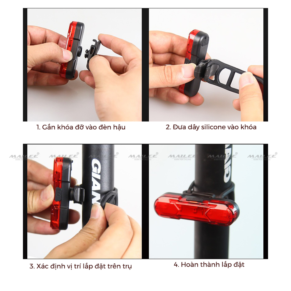 Đèn 5 LED Cảnh báo sau Xe Đạp giúp đạp xe an toàn ban đêm 4 chế độ sáng (Đèn Đỏ) Mai Lee Video thực tế đèn LED xe đạp cảnh báo Màu Đỏ