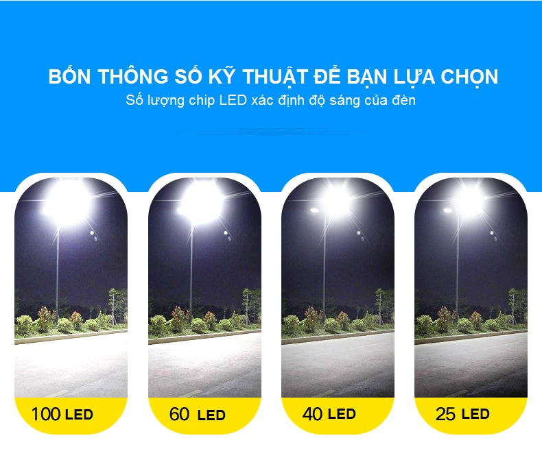 Đèn Led Năng Lượng Mặt Trời Chiếu Sáng Ngoài Trời IP65 100W Phù hợp cho chiếu sáng đường phố, lối đi, khu khuân viên, sân vườn, trang trại và khu sinh thá - Đèn đường