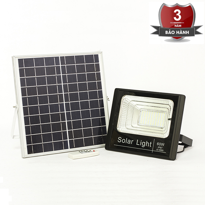 Đèn LED Năng Lượng Mặt Trời JD-8800 Công Suất 100W Giới thiệu sản phẩm Sử dụng chiếu sáng như đèn sân vườn cho biệt thự, đèn đường, đèn chiếu, đèn cho các khu đất rộng, khu vườn, khu ao, vuông tô Đèn tích hợp bộ cảm biến ánh sáng, tự động sáng đèn khi trời tối và tắt đèn khi trời sáng. Chế độ sáng thông minh khi ít điện hoặc mưa liên tục sẽ giảm điện tiêu thụ về đêm khuya để tiết kiệm điện. Đèn LED năng lượng mặt trời JD-8800 có kiểu dáng thời trang, thiết kế hiện đại giúp bạn có thêm một vật dụng rất hữu ích. Đèn sử dụngbóng đèn LED nên ánh sáng cho màu sắc chân thật và có độ bền rất cao,khả năng chiếu sáng liên tục lên đến 20-24 giờ đồng hồ. Đây sẽ là sản phẩm thiết yếu đối với mỗi gia đình, doanh nghiệp nhất là những nơi hay mất điện hoặc nhưng vị trí không thể hoặc khó để kéo nguồn điện. ĐẶC ĐIỂM NỔI BẬT ÁNH SÁNG TỐT Đèn LED năng lượng mặt trời JD-8800 có chế độ ánh sáng trắng đều, liên tục. NHIỀU CÔNG DỤNG Thiết bị chiếu sáng không cần nguồn điện. Dễ dàng lắp đặt ở những vị trí không thể kéo nguồn điện. Không mất chi phí tiền điện. SẠC PIN BẰNG NĂNG LƯỢNG MẶT TRỜI Tích hợp chế độ sạc pin bằng năng lượng mặt trời. AN TOÀN Lớp chống thấp nước chuẩn IP-67 Chống sét TVS Sử dụng nguồn điện sạc là năng lượng mặt trời Không phát nhiệt gây bỏng. Không mảnh vỡ thủy tinh.   KHÔNG TỎA NHIỆT Không tạo bức xạ nhiệt. Không tạo bức xạ nhiệthồng ngoại. An toàn cho người sử dụng trong nhiều giờ liên tục. KIỂU DÁNG Kiểu dáng hiện đại, thời trang. Thân đèn được làm bằng hợp kim cao cấp, bóng đèn được làm bằng nhựa cao cấp. Thiết kế lịch lãm, sang trọng. DUNG LƯỢNG PIN Đèn LED năng lượng mặt trời  JD-8800 có dung lượng: 36.000mAh Li-Pin THỜI GIAN SỬ DỤNG Thời gian sử dụng:20h - 24h. ĐỘ BỀN CAO Thiết kế độc đáo hạn chế rơi vỡ, bóng có độ bền cao. CÔNG SUẤT: 100W Thông số kỹ thuật: