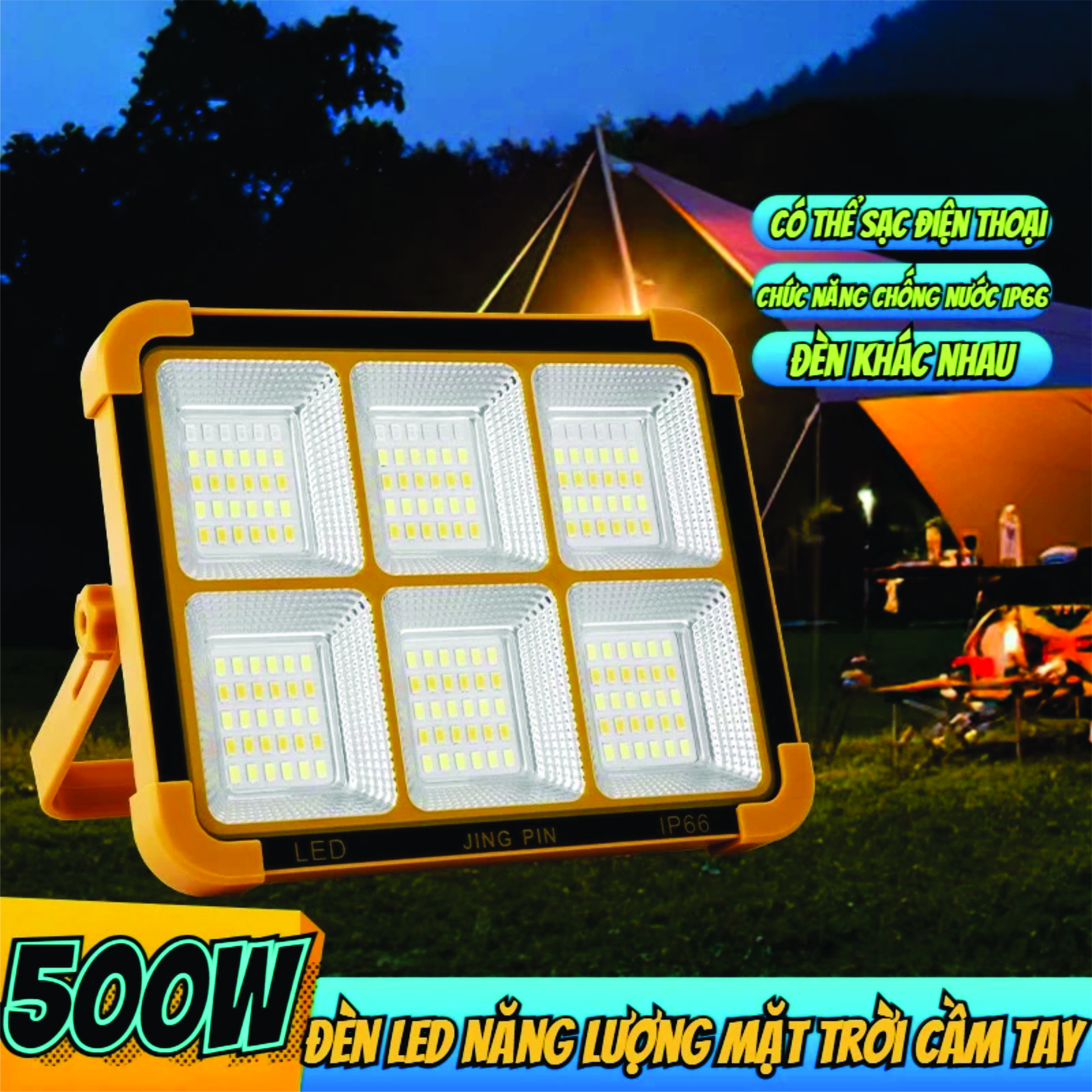 Đèn cắm trại dã ngoại, tích điện và sạc bằng năng lượng mặt trời #muasam
