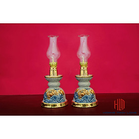 Đèn dầu Bát Tràng - Sản phẩm bao gồm: đèn + bóng đèn - Kích thước: cao 30cm tính cả bóng đèn - Đèn dầu Bát Tràng men lam bọc đồng được nung ở nhiệt