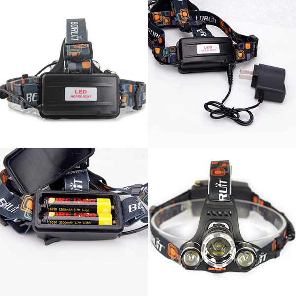 Đèn Pin Đội Đầu 3 Bóng T6, 4 Chức Năng, Đầy đủ Phụ Kiện gồm 02 viên pin Sạc Zin 18650 , Adapter sạc theo đèn.