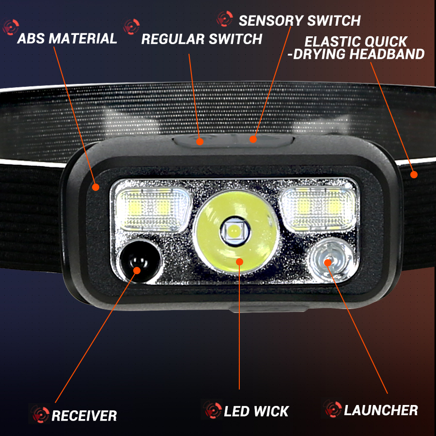 Mô tả sản phẩm Mới XPE+COB cảm ứng ánh sáng mạnh đầu đèn USB sạc ngoài trời ánh sáng ban đêm đi xe ánh sáng đầu - Có thể sạc qua usb - Đèn đội