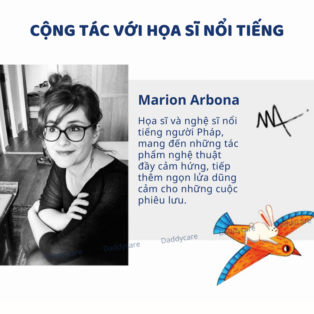 - CỘNG TÁC VỚI HỌA SĨ NỔI TIẾNG: Marion Arbona, họa sĩ và nghệ sĩ nổi tiếng người Pháp, mang đến những tác phẩm nghệ thuật đầy cảm hứng, tiếp thêm ngọn lửa dũng cảm cho những cuộc phiêu lưu.
