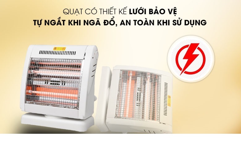 - Tự động ngắt điện khi quạt bị nghiêng hay đổ Đèn Sưởi Điện Halogen FJ-SNV1 - Hàng Chính Hãnglà một trong những thiết bị sưởi ấm không thể thiếu tại gia đình trong mùa đông. Sản phẩm sử dụng đèn Halogen, tỏa nhiệt đều, làm ấm nhanh, không gây khó thở và khô da, đảm bảo an toàn cho người sử dụng. Kiểu dáng sang trọng, hiện đại Đèn Sưởi Điện Halogen FJ-SNV1 - Hàng Chính Hãng có thiết kế sang trọng hơn, kiểu dáng hiện đại và bắt mắt, nhỏ gọn tiết kiệm diện tích và phù hợp mọi không gian như phòng khách, phòng ngủ, Điều khiển dễ dàng bằng nút xoay Đèn Sưởi Điện Halogen FJ-SNV1 - Hàng Chính Hãng có 2 mức công suất 400W, 800W điều chỉnh bằng núm vặn linh hoạt theo 2 chiều giúp bạn dễ dàng lựa chọn được mức nhiệt phù hợp với môi trường và nhu cầu sử dụng. Chắc chắn, bền đẹp, an toàn Đèn Sưởi Điện Halogen FJ-SNV1 - Hàng Chính Hãng có chân đế vững chãi, lưới bảo vệ, tránh gây bỏng cho người dùng. Đặc biệt, lồng và vỏ nhựa phía sau chống cháy tuyệt đối, lưới tản nhiệt giúp sản phẩm không bị hư hỏng do quá nóng. TỎA NHIỆT ĐỀU, KHÔNG GÂY KHÔ DA Làm ấm cực nhanh, không gây khô da Đèn Sưởi Điện Halogen FJ-SNV1 - Hàng Chính Hãng sử dụng đèn halogen, làm ấm cực nhanh, độ bền vượt trội, chống chói mắt hiệu quả và không đốt cháy oxy nên không gây khó thở hay khô da khi dùng. Quay đảo chiều, tỏa nhiệt đều khắp phòng Sản phẩm có khả năng quay đảo chiều liên tục, giúp tỏa nhiệt đều khắp phòng, rất thích hợp khi sử dụng tại không gian rộng như phòng khách hoặc phòng có nhiều người. An toàn với người sử dụng Đèn Sưởi Điện Halogen FJ-SNV1 - Hàng Chính Hãng có chế độ tự động ngắt điện khi bị nghiêng đổ và hoạt động trở lại bình thường trở lại trạng thái an toàn. Thông số kỹ thuật