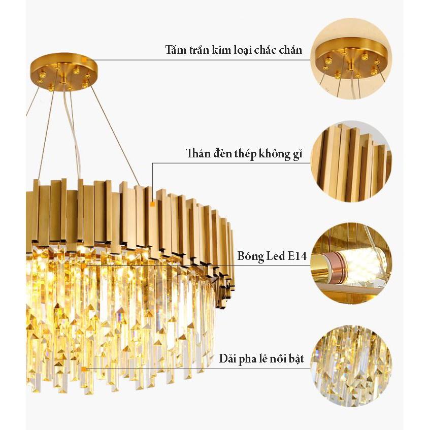Kích thước sản phẩm: D600 mm Đèn pha lê là lựa chọn hàng đầu trong trang trí nội thất. Không chỉ bởi vẻ đẹp quyến rũ người nhìn mà còn mang đến nhiều ý nghĩa tốt lành cho gia chủ. Pha lê là biểu tượng của sự tốt lành, may mắn. Vậy nên mọi người thường lắp đèn pha lê ở phòng khách, phòng ăn. Đây là nơi cả gia đình sum họp quây quần bên nhau sau cả ngày mệt mỏi với công việc, học tập.
