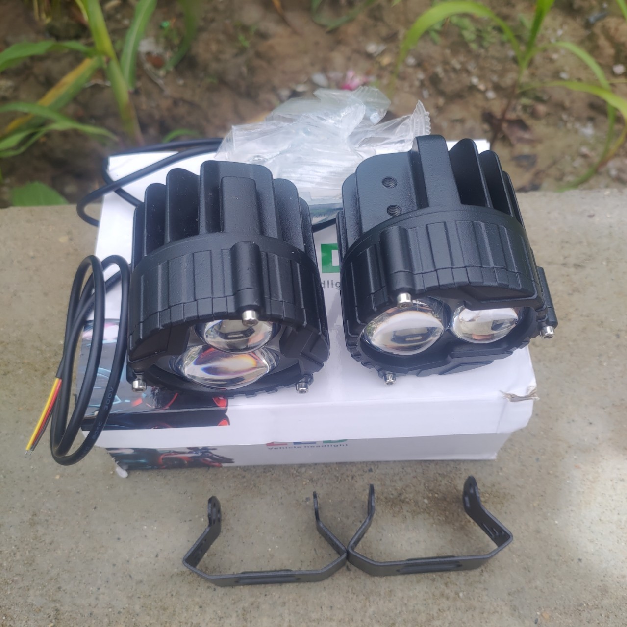 Đèn trợ sáng 3 bi cầu led siêu sáng dùng bình ắc quy xe máy, xe điện.