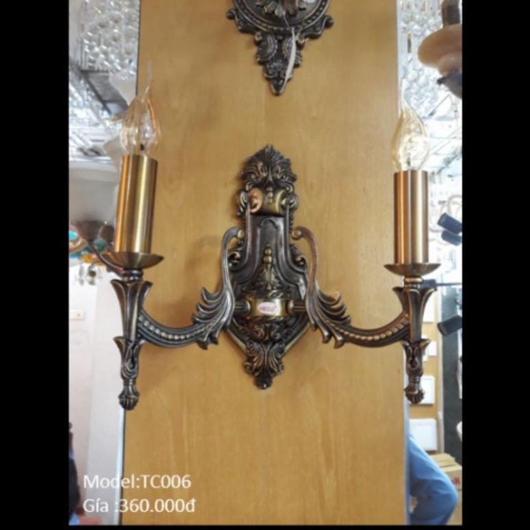 Mô tả sản phẩm MSP: TC006 Chất liệu: thân của đèn được khiến cho kim tông màu đồng Mầu sắc: thân màu đồng, 2 cây gắn bóng led là kim tông màu đồng Số lượng