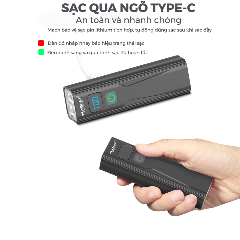 Đèn Xe Đạp BC-10 dung lượng 2600mAh 2 bóng, có hiển thị thời gian còn lại sử dụng, sạc Type-C, Có Hỗ trợ Sạc Khẩn Cấp - Mai Lee Mẫu sản phẩm: Đèn trước xe