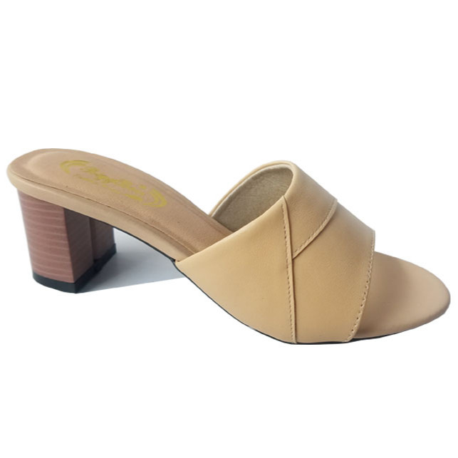 Dép nữ cao gót 8cm Trường Hải da bò mềm mại màu kem CG145  Dép Nữ Da Bò Thật BIGGBEN Cao Cấp DNQN62