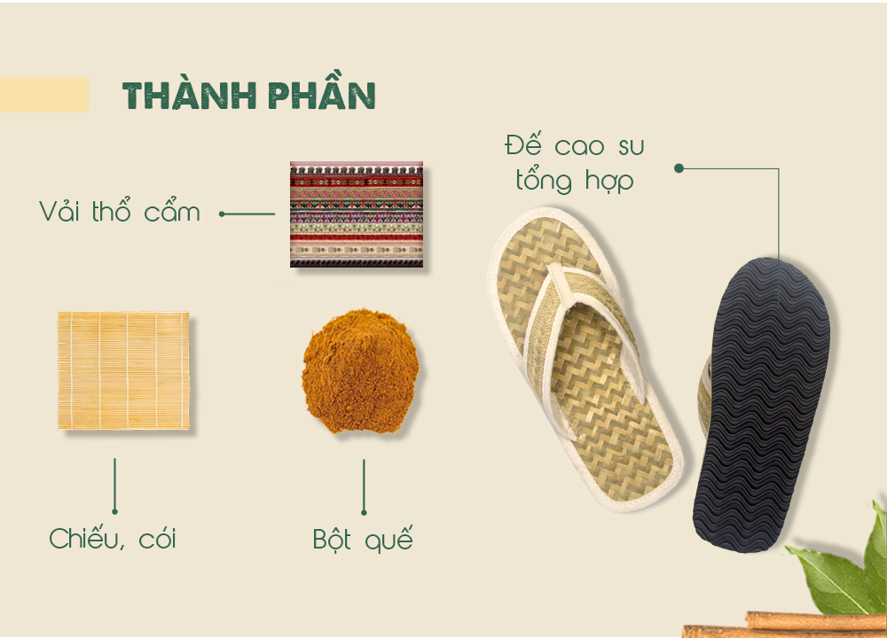 Dép chiếu quế làm từ nguyên liệu thiên nhiên