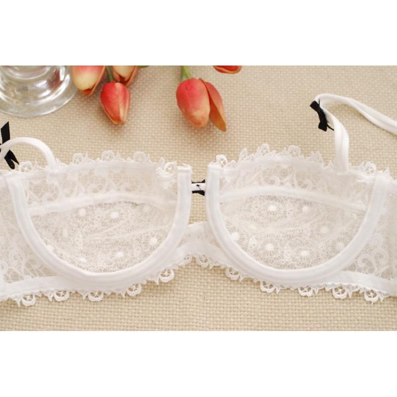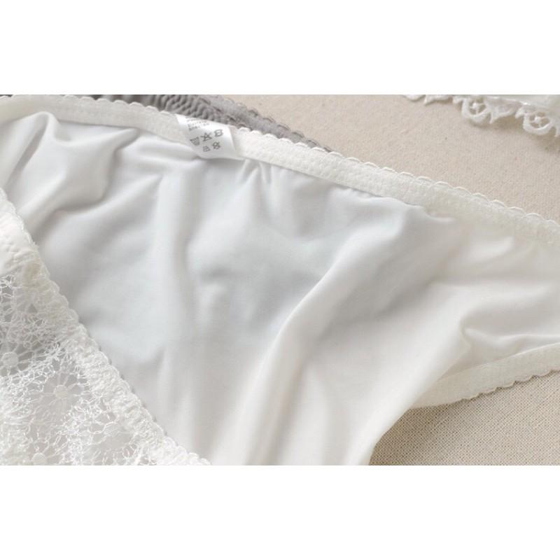 chất ren thoải mái thân thiện với làn da nhạy cảm nhất,kết hợp với vải cotton thoáng khí thoải mái với lớp lót áo sợi lưới thiết kế dây đeo vai rất phù hợp, sườn đàn hồi tốt, có 2 hàng và 3 nút khóa cài . Đáy quần có 2 lớp với lớp vải cotton khoáng khi hút ẩm tốt.