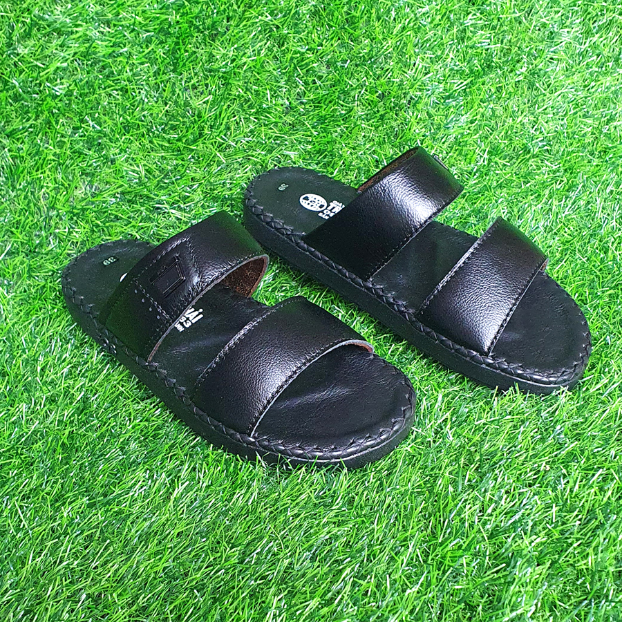 Dép da nam Quai ngang một bản da bò thật màu đen đế cao 2.5cm chính hãng Trường Hải DNĐ157
