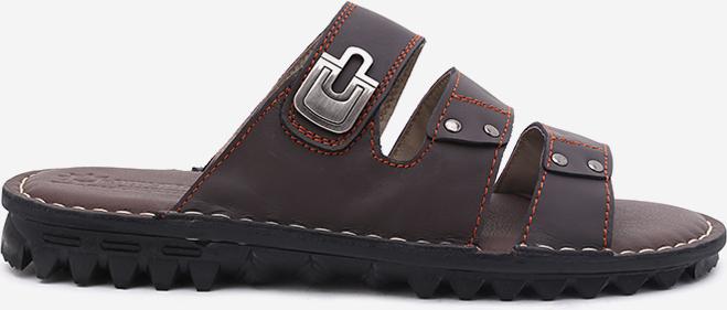 Dép nam Huy Hoàng da bò 3 quai màu nâu 7779