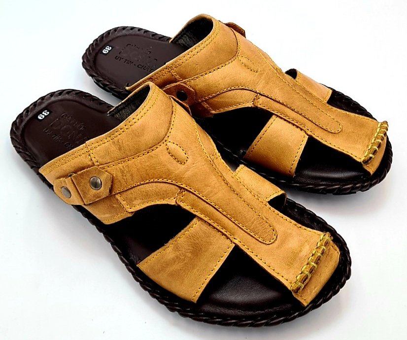 - Dép Nam với chất liệu da Bò bền đẹp kết hợp đế cao su êm nhẹ chống trơn trượt giúp bạn Nam luôn thoải mái, tự tin khi đi chơi, dạo phố, đi làm.