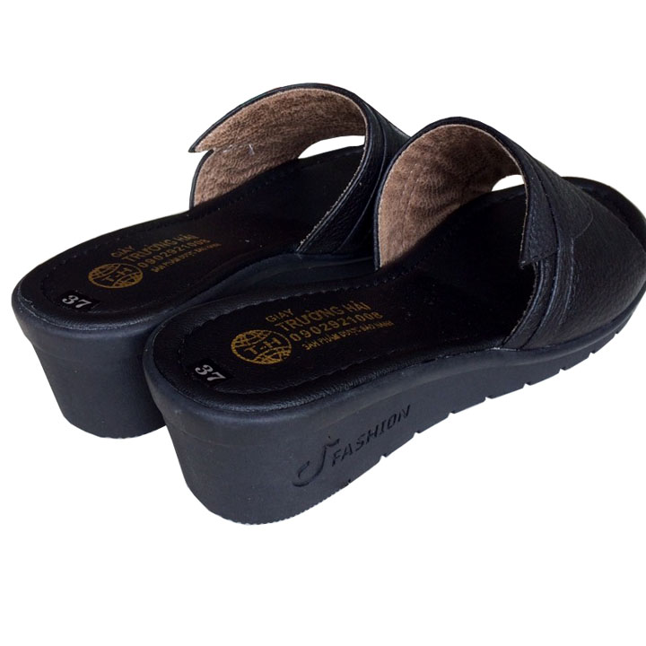 Dép nữ trường hải chất lượng hoàn toàn khác hàng gia công giá rẻ trôi nổi trên thị trường Đế dép cứng ko nhăn ko lún, chiều cao đế 4cm. Dép đế cao có kiểu