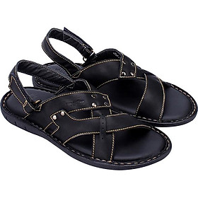 Dép nam Huy hoàng da bò quai hậu màu đen 7145