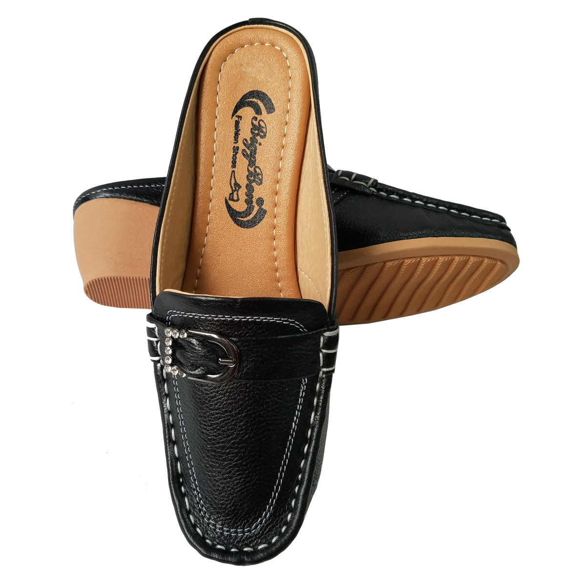 ROSATA - thương hiệu giày thời trang nữ cao cấp THUẦN VIỆT NHƯNG CHẤT LƯỢNG QUỐC TẾ ---- Dép sục nữ màu đen 2p RO381 ROSATA tại BCASHOP hở mũi, quai ngang có đính nơ