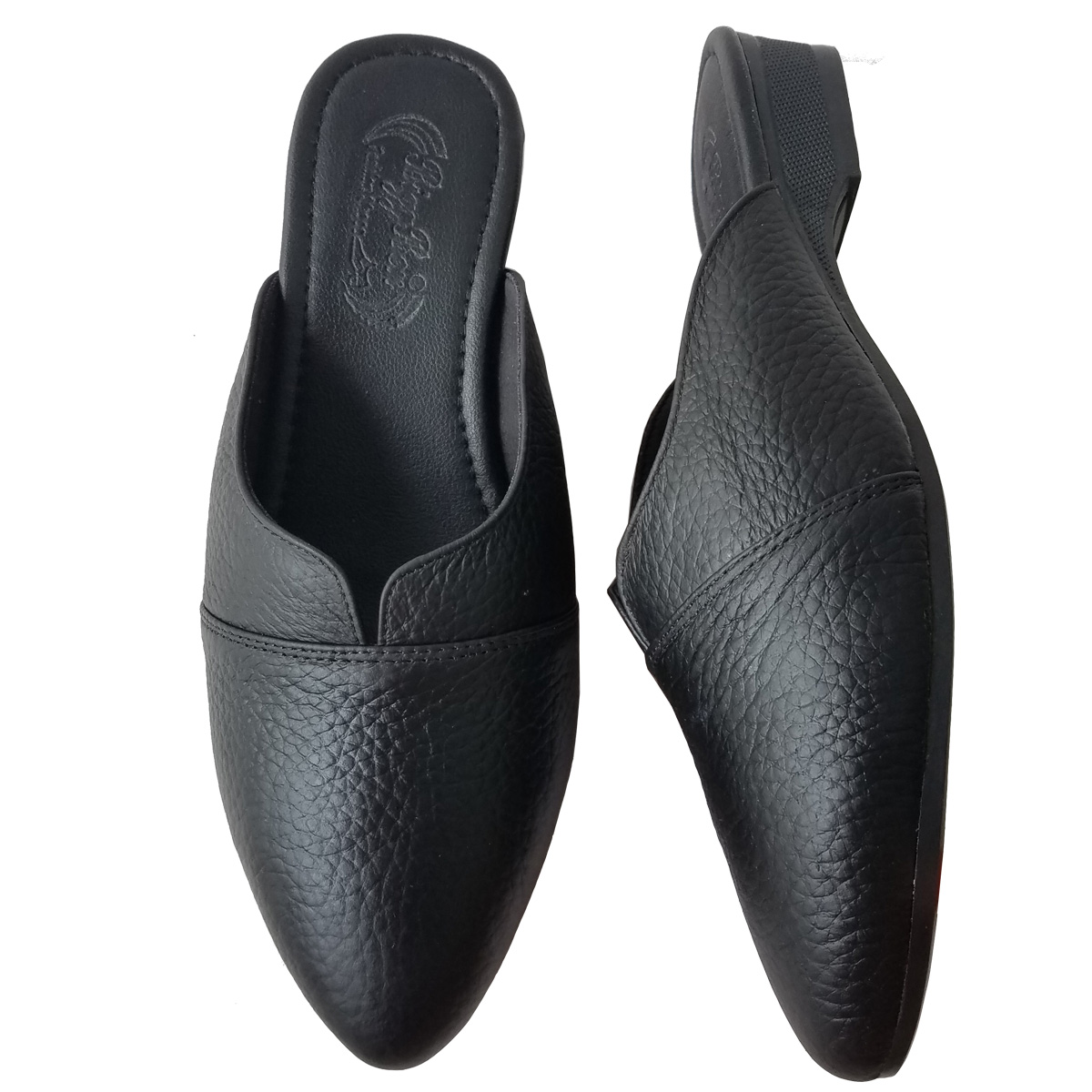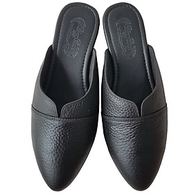 Giày Sục Nữ Giày Cao Gót 3Cm Da Bò Thật Siêu Mềm Cao Cấp Evelynv 3P2916 (Đen)