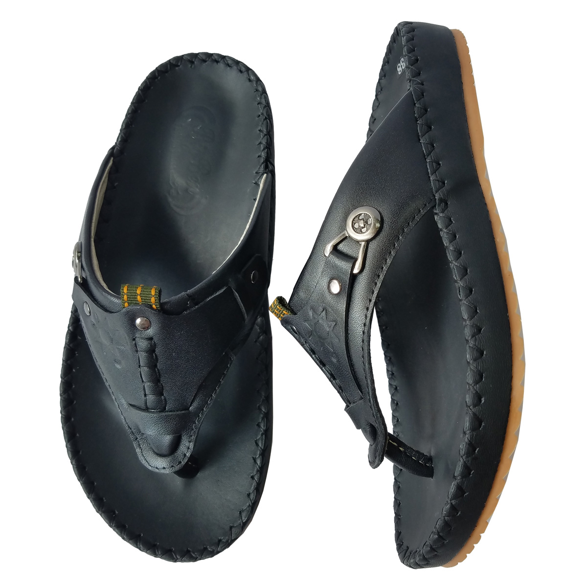 Dép da nam xỏ ngón màu đen - da bò thật 100%