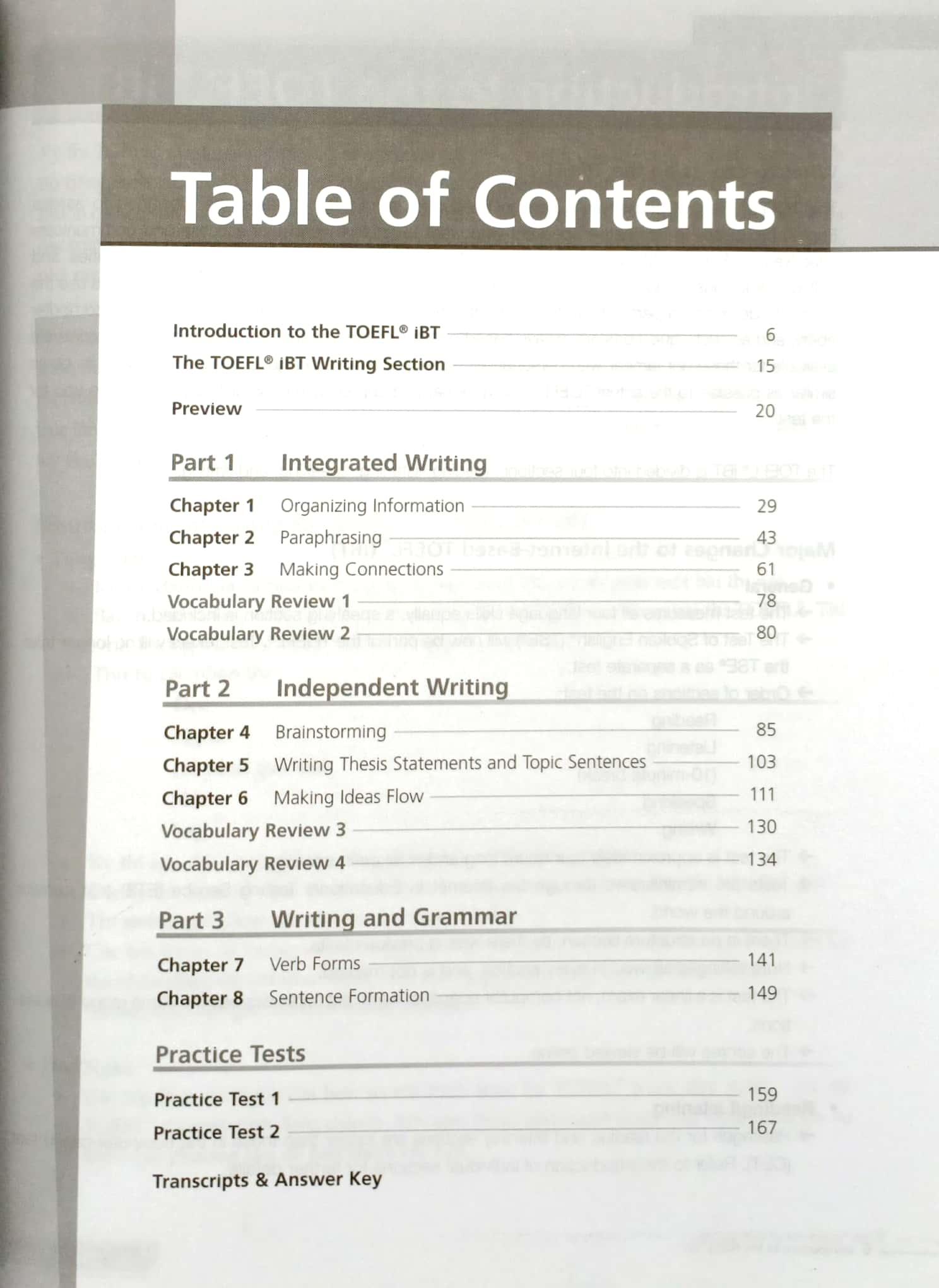Giáo Trình Hướng Dẫn Ôn Tập Và Chuẩn Bị Cho Kỳ Thi Toefl Cuốn sách này chứa nhiều tài liệu cung cấp một khóa học chuẩn bị toàn diện cho phần thi Viết của TOEFL