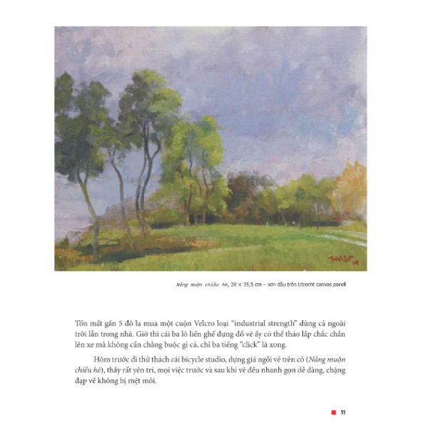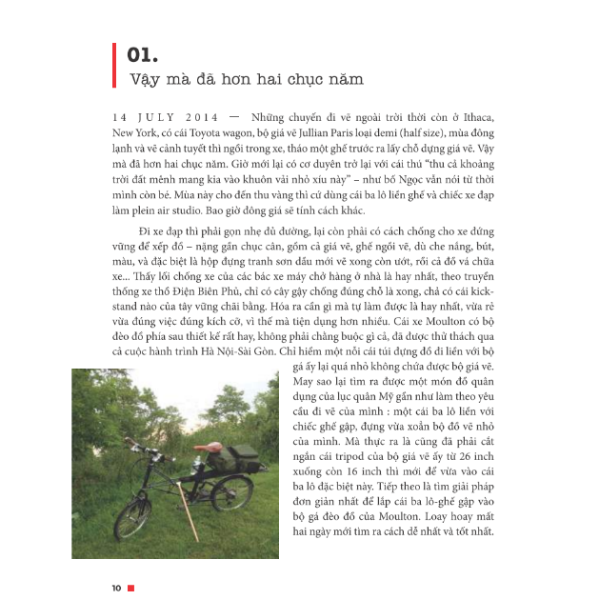 Ý nghĩa của bìa sách: “cái ba lô liền ghế và chiếc xe đạp làm plein air studio” – đồ nghề đi vẽ khi ấy của tác giả. Một bức ảnh do tác giả chụp.