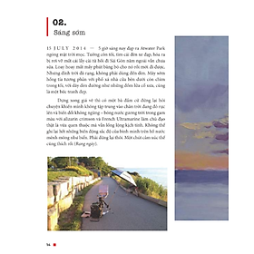 Đang chán nản thì nghe có tiếng trẻ con ngay sau lưng “it’s so good... so good”. Hai đứa bé gái chỉ ba bốn tuổi, đẹp rạng rỡ như trong tranh ngày xưa bước ra, khăn váy như minh họa trong sách truyện cổ tích, vừa nhìn bức tranh vừa nhìn mình như nhìn một con gấu hiền lành gặp giữa rừng. Rồi bé lớn hơn hỏi mình với một vẻ nhìn chứa đựng toàn bộ tâm lý tò mò của nhân loại: “What’s your name?” Lạ thế. Mình có cảm giác như lần đầu tiên trong đời nói tên mình cho thế giới biết. Bà mẹ xuất hiện. Lặng lẽ cười. Lặng lẽ nhìn. Rồi nhẹ nhàng đưa hai thiên thần bé xíu ấy đi về phía sông, không ra chỗ vệt màu burnt sienna của mình, mà về phía rừng cây, như biến mất vào không gian xanh xanh ấy. Ngay lúc ấy, cảm giác của mình chỉ giống như đang nằm mơ. Nhưng rồi nắng bỗng ùa xuống. Như thể có thiên thần sai khiến. (tr.28)