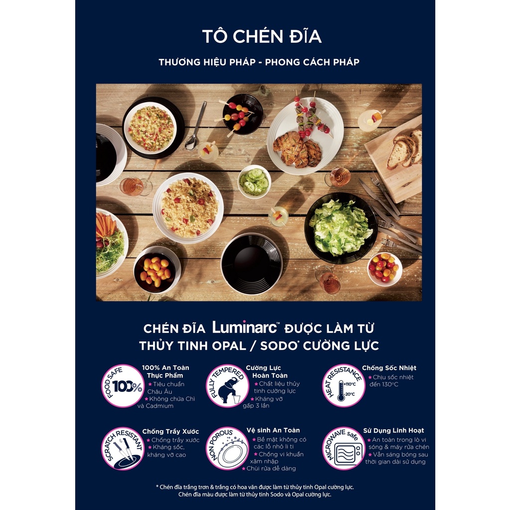 BỘ BÁT ĐĨA LUMINARC DIWALI 10 CHI TIẾT EV10A Thủy tinh cường lực giúp bền gấp 3 lần thủy tinh thường Khả năng chống xước vượt trội Khả năng chịu sốc nhiệt khi thay đổi