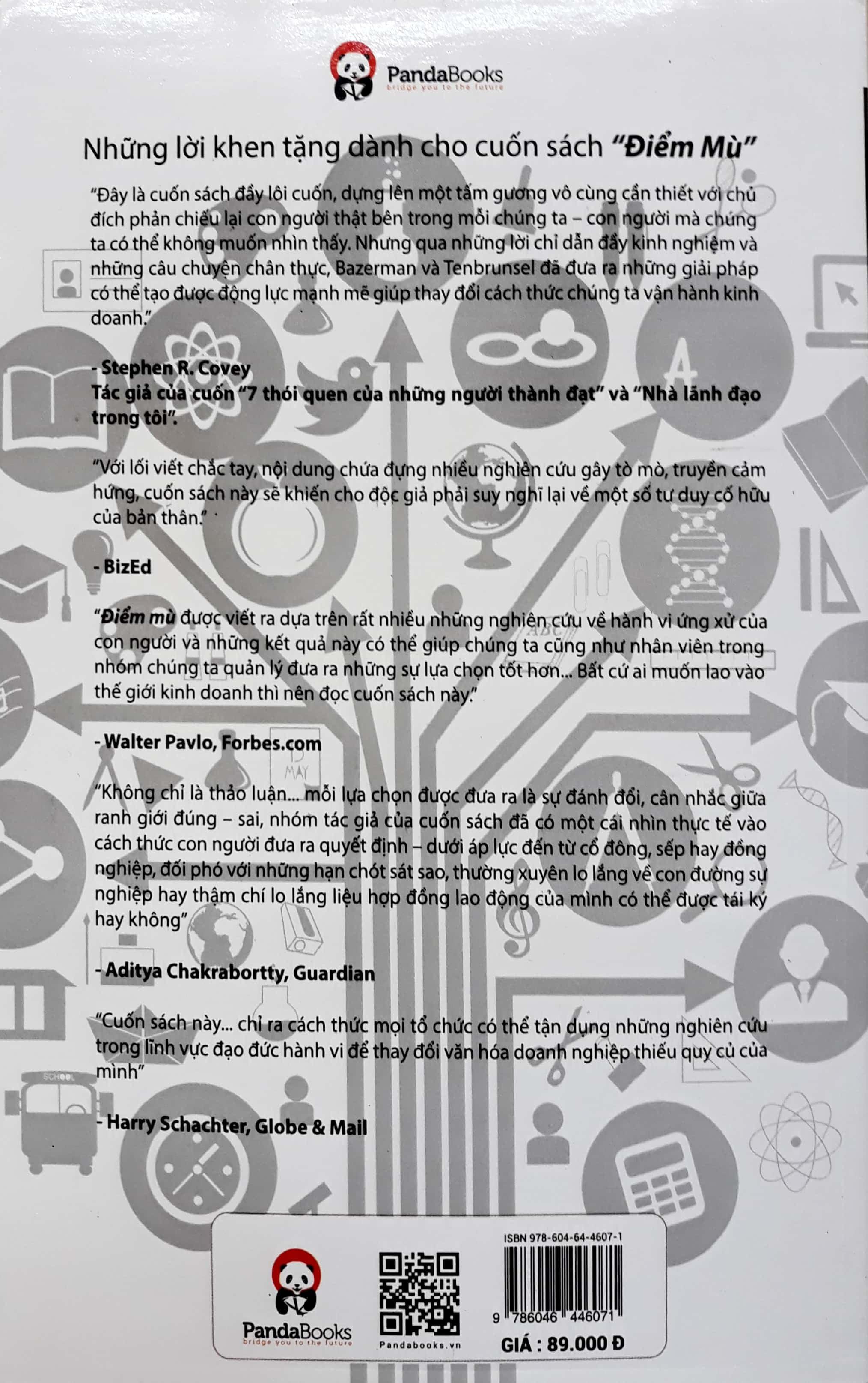 Trong cuốn sách Điểm Mù, những nhà nghiên cứu hàng đầu trong lĩnh vực đạo đức kinh doanh Max Bazerman và Ann Tenbrunsel đã nghiên cứu cách thức chúng ta đánh giá quá cao năng lực để làm những gì chúng ta cho là đúng đắn và chúng ta đã hành xử thiếu đạo đức thế nào dù không có chủ ý. Bằng việc phân tích những vụ bê bối về đạo đức trong quá khứ và hiện tại - bao gồm cả những vụ sụp đổ thị trường tài chính, vụ sụp đổ Enron, những thiếu sót của Ford Pinto, và thảm họa tàu vũ trụ Challenger - nhóm tác giả đã điều tra ra bản chất của những vụ bê bối kiểm soát đạo đức trong thế giới kinh doanh và nhiều hơn thế nữa, tác giả khám phá ra những lý do mà các cách tiếp cận đạo đức truyền thống đều không phát huy tác dụng. Nhóm tác giả đưa ra luận điểm rằng những vụ bê bối sẽ vẫn tiếp tục xảy ra trừ phi những cách tiếp cận này cân nhắc đến vấn đề tâm lý của cá nhân khi đối mặt với những tình thế khó khăn về đạo đức.