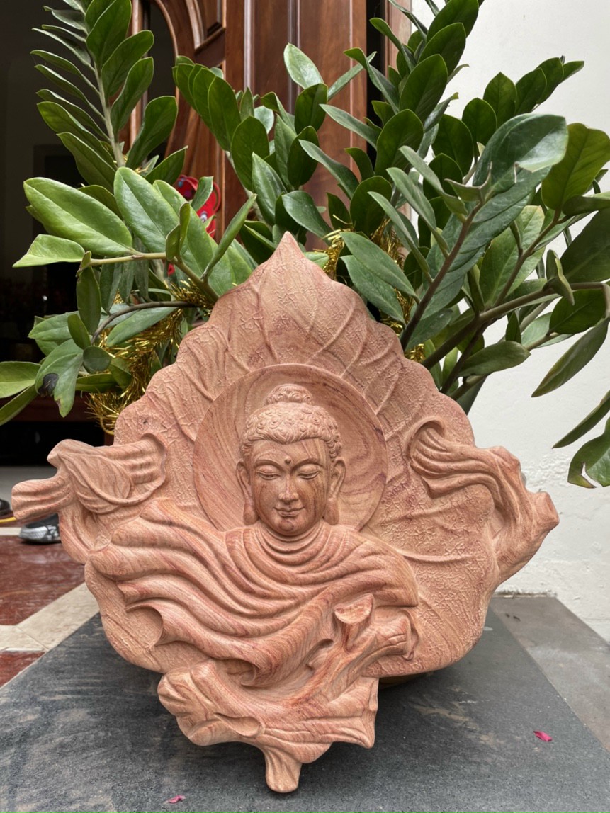 ✨Diện phật thích ca lá bồ đề bằng gỗ hương đá kt mặt rộng 40×40×3,5cm