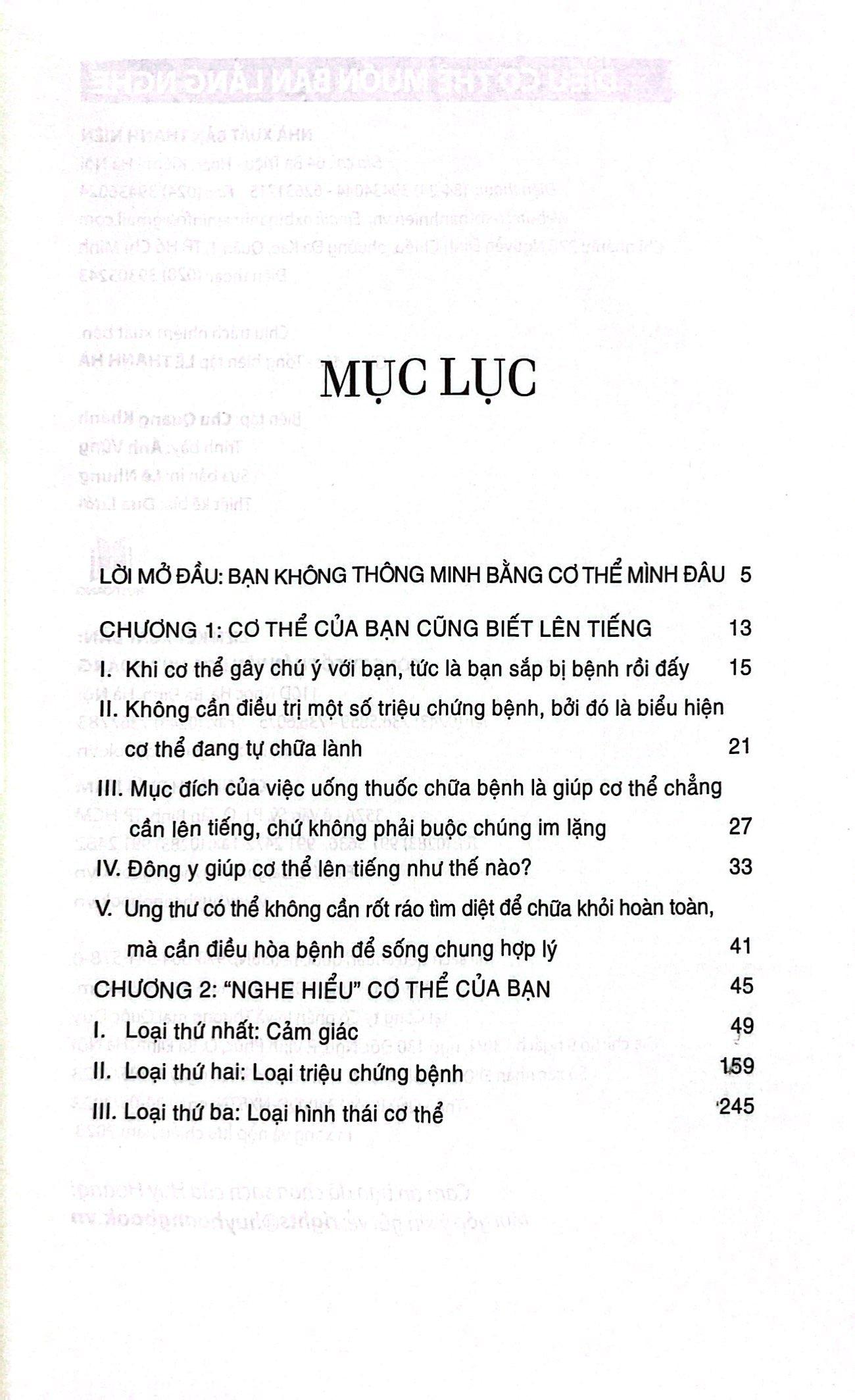 Cuốn sách này sẽ giúp bạn hiểu được ĐIỀU CƠ THỂ MUỐN BẠN LẮNG NGHE để từ đó giảm bớt nỗi sợ hãi với bệnh tật, tránh đều trị quá liều và hạn chế nguy cơ khiến bệnh từ nhẹ trở nên nặng hơn.