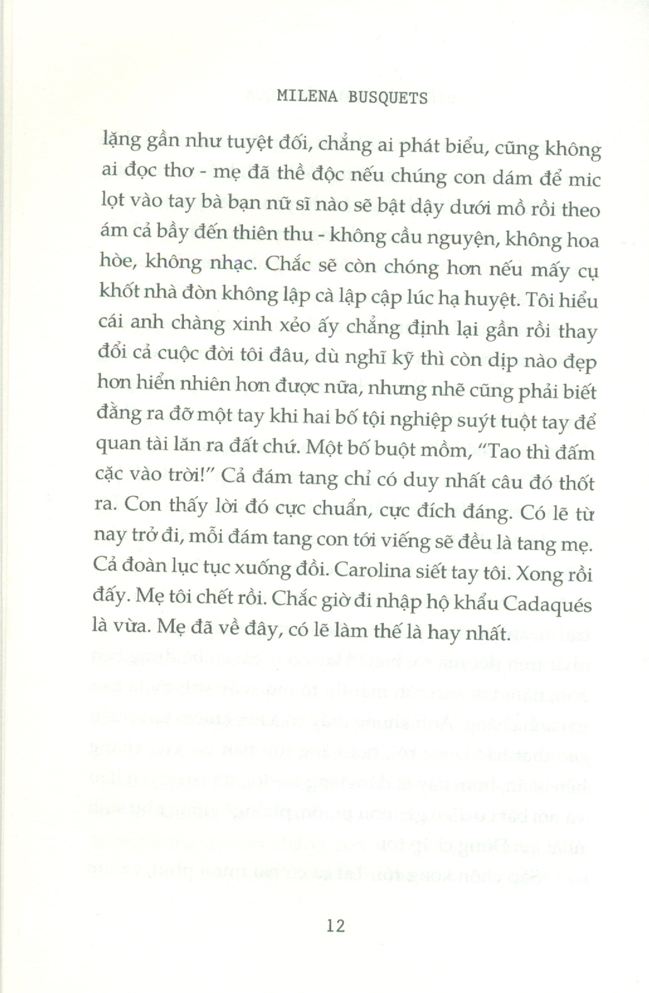 Mẹ mất, Blanca rời Barcelona đến sống trong ngôi nhà nghỉ dưỡng của gia đình ở Cadaqués. Cô kiếm tìm bình yên dưới ánh mặt trời Địa Trung Hải, trên mảnh đất chứa đầy ký ức tuổi thơ mình. Đồng hành cùng cô là một nhóm người kỳ cục: hai người chồng cũ của cô, hai cậu con trai cô sinh hạ được sau hai lần kết hôn, hai cô bạn gái thân Sofía và Elisa cùng anh bạn trai Santi của Elisa. Và dĩ nhiên, cả người mẹ quá cố của cô nữa, người cô từng yêu biết bao mà cũng căm hận biết bao, người cô vẫn cứ mãi thầm gửi cho những bức thư trong tâm tưởng. Giữa một kỳ nghỉ lạ lùng, trong bầu không khí vừa hài hước nhẹ bẫng, lại vừa đau đớn hoài niệm, đan xen tình dục và cái chết, quá khứ và hiện tại, triết học và những đùa cợt, dường như với cô, điều gì rồi cũng qua thật, chỉ nỗi nhớ mẹ là khó mà nguôi ngoai …
