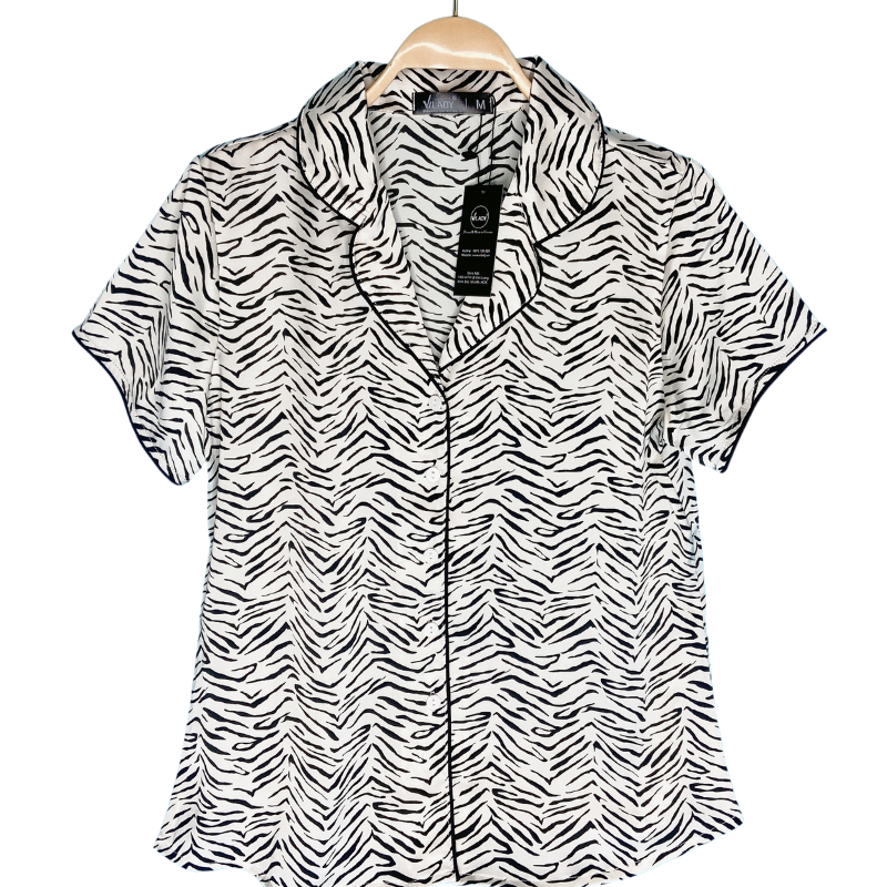 Đồ bộ mặc nhà nữ Pijama lụa VILADY - B136 kiểu đồ bộ ngắn họa tiết vằn đen siêu dễ thương, chất liệu lụa Pháp ( lụa latin)