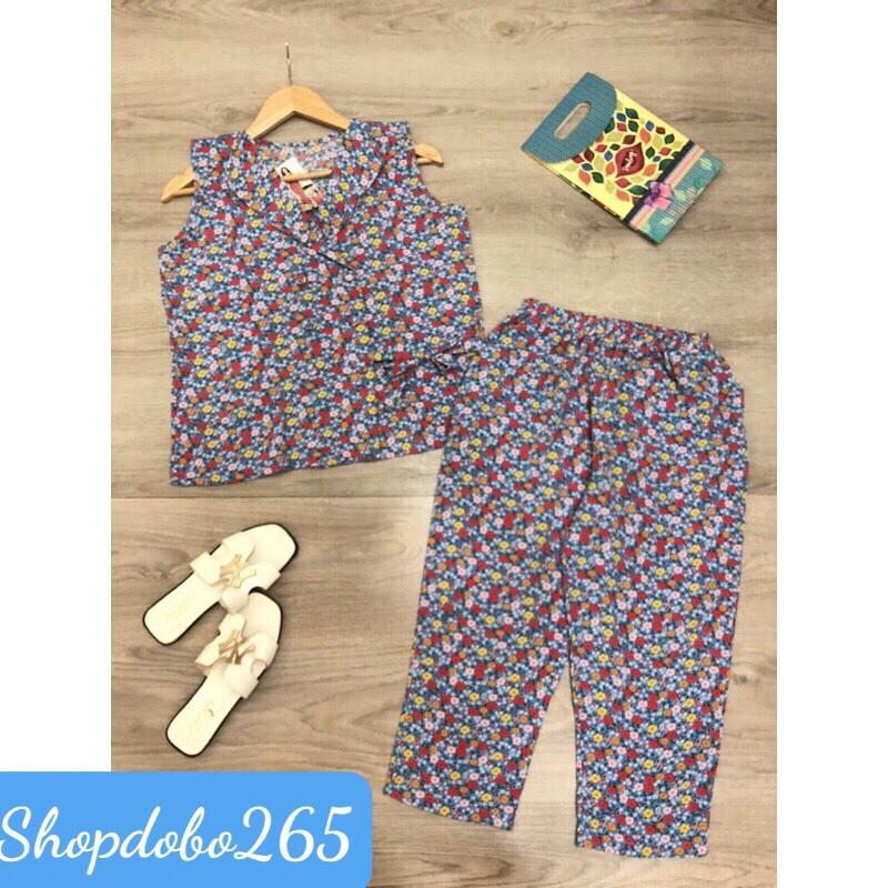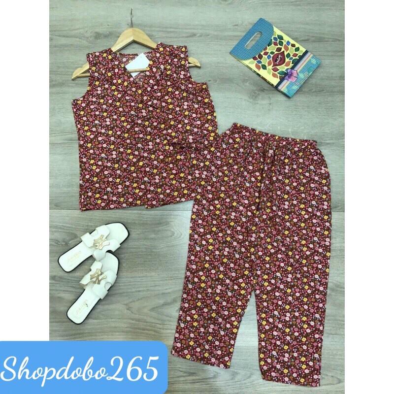 Đồ bộ nữ,đồ ngủ mặc nhà lửng 9 tấc sát nách vải lụa hoa nhí.