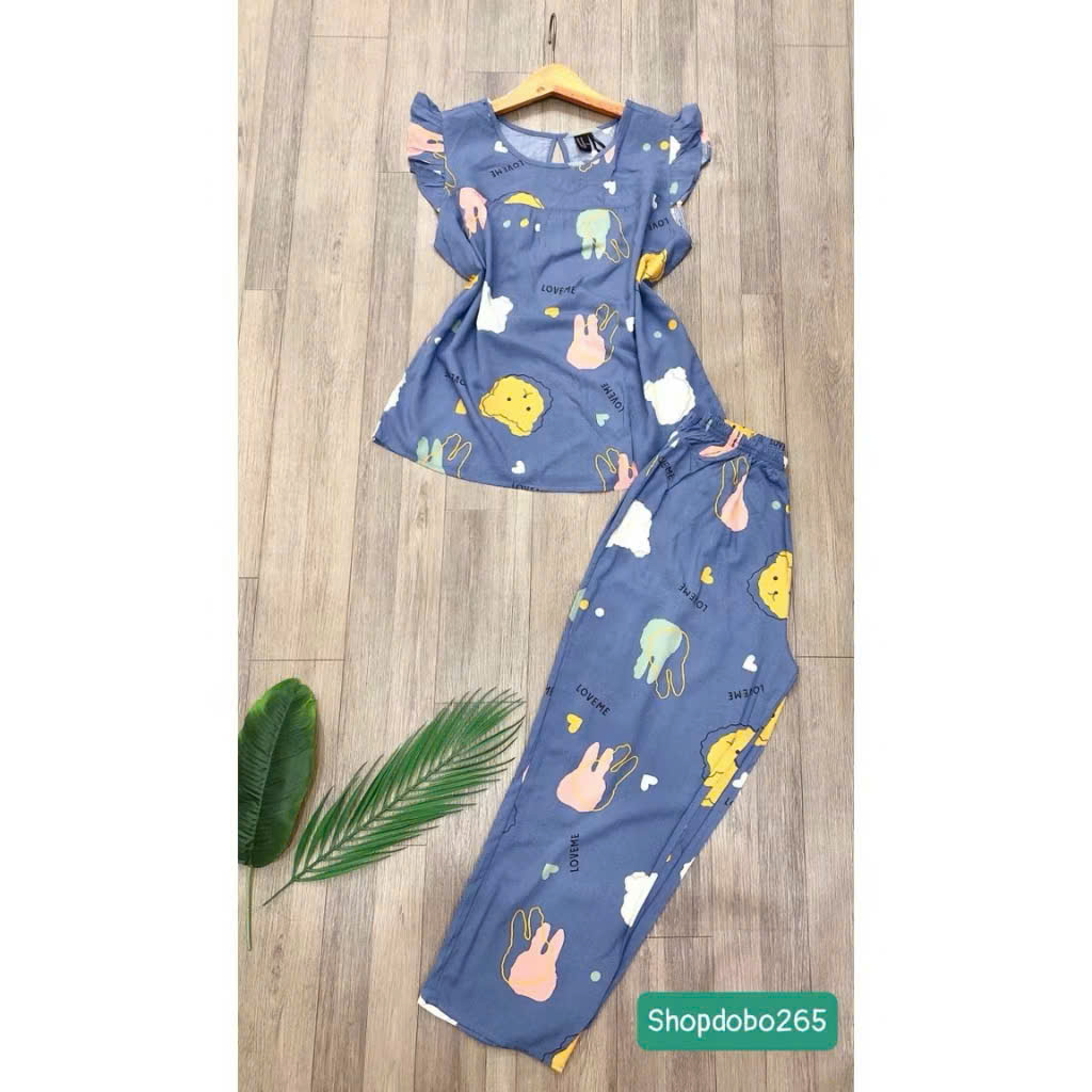 Mua tại TiktokĐồ bộ nữ,đồ ngủ mặc nhà lửng 9 tấc tay cánh tiên vải lanh BL 52 họa tiết dễ thương size 51-70kg.