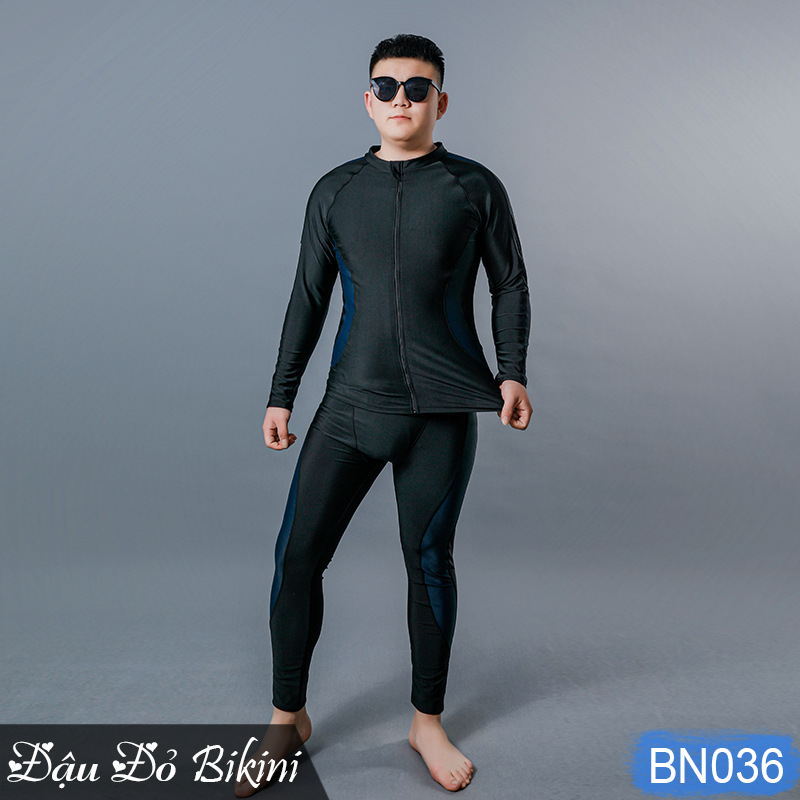 ✨Đồ bơi nam cỡ đại đến 130kg, quần áo tắm big size cho người béo mập, áo dài tay khoá kéo & quần dài chống nắng, chất thun bơi lạnh Hàn co giãn đa chiều | BN036