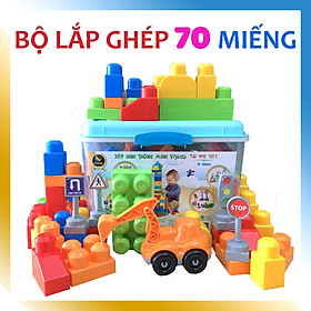 ✨Đồ Chơi Bộ Xếp Hình Thông Minh Vijago 70 Miếng Ghép Cỡ Lớn Màu Sắc Bắt Mắt, Có Kèm Ô Tô Múc Và Hộp Đựng Tiện Lợi Cho Bé Để Gọn Gàng