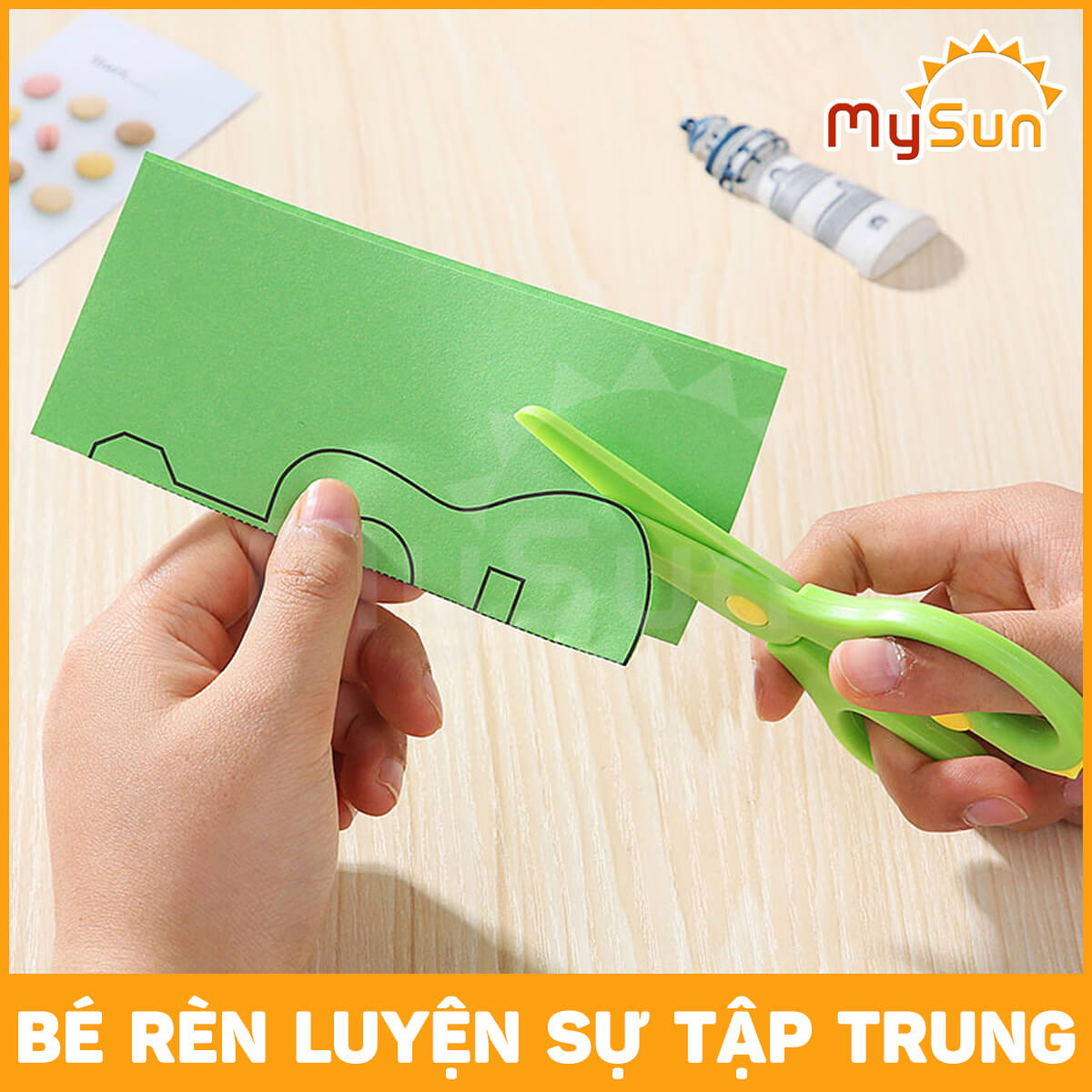 - Giấy dày dặn, không chứa hóa chất độc hại, kéo bo tròn đầu đảm bảo an toàn khi sử dụng.